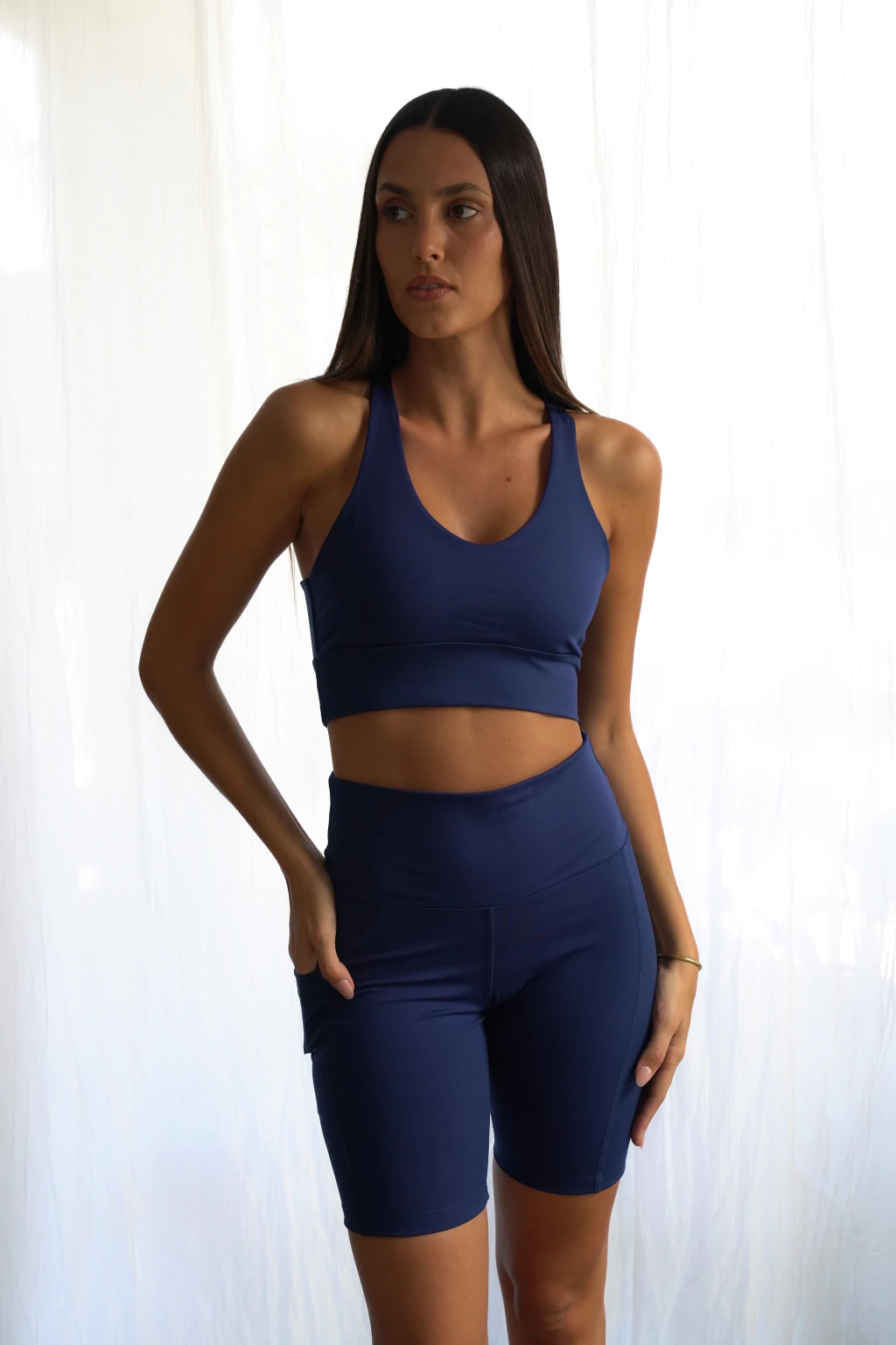 Calza biker (por encima de las rodillas) con cintura alta, sin elastico pero super sujetadora. Bolsillo lateral con detalles de bordador.