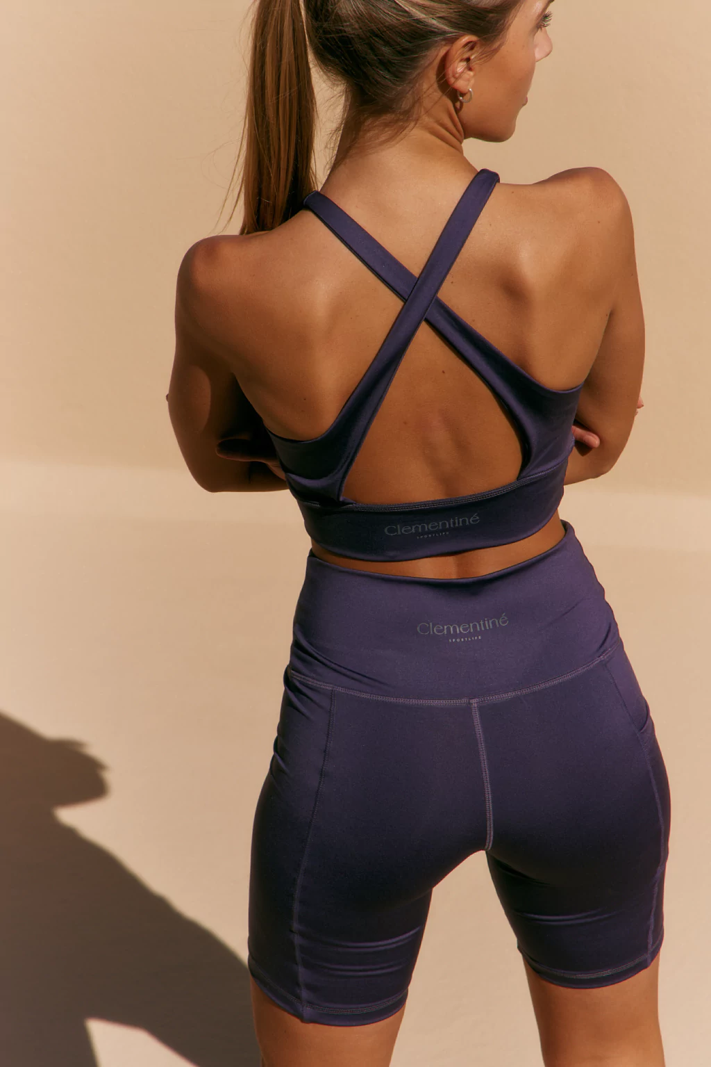 Calza biker (por encima de las rodillas) con cintura alta, sin elastico pero super sujetadora. Bolsillo lateral con detalles de bordador.