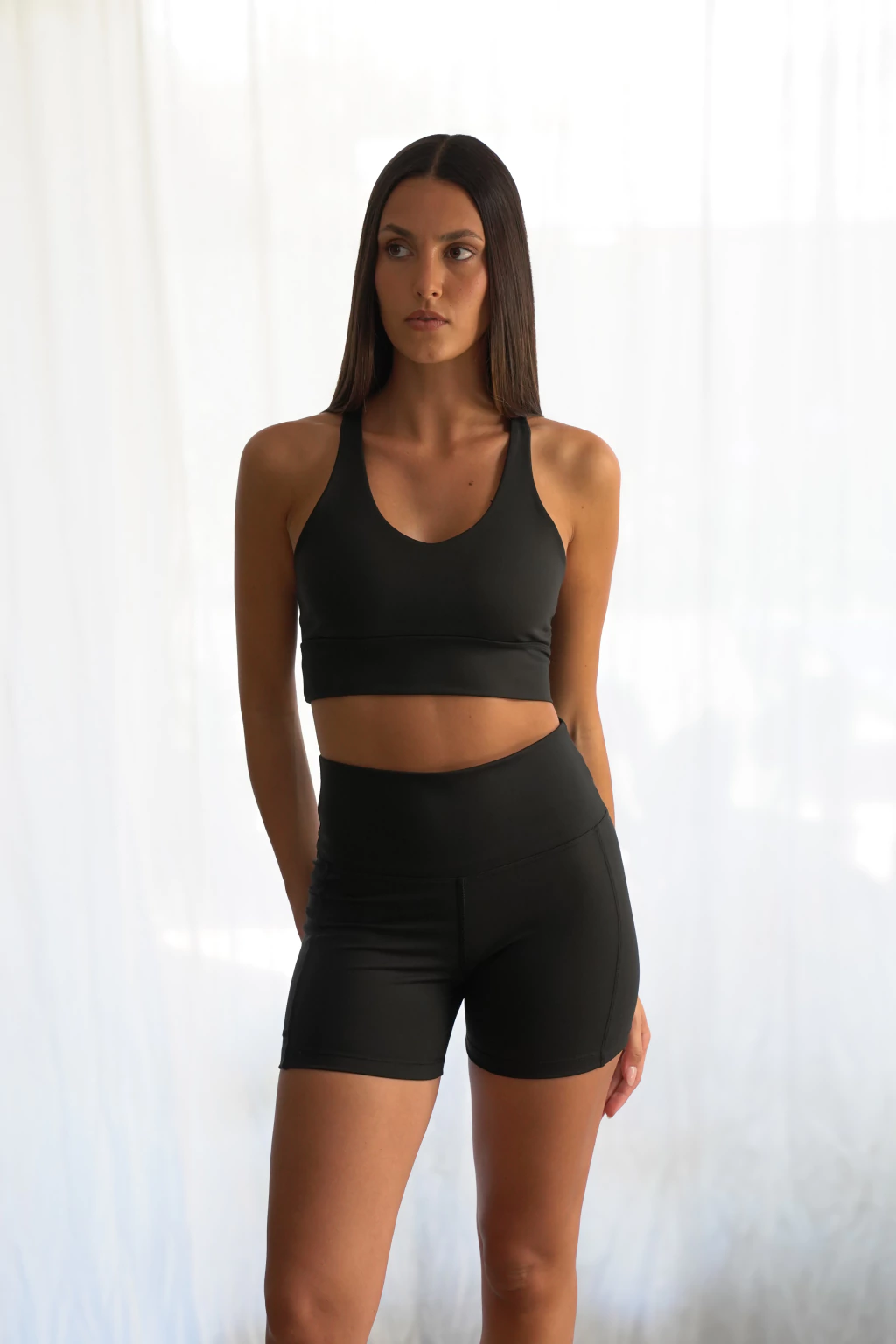 Calza tipo short con cintura alta, sin elastico pero super sujetadora. Bolsillo lateral con detalles de bordador.