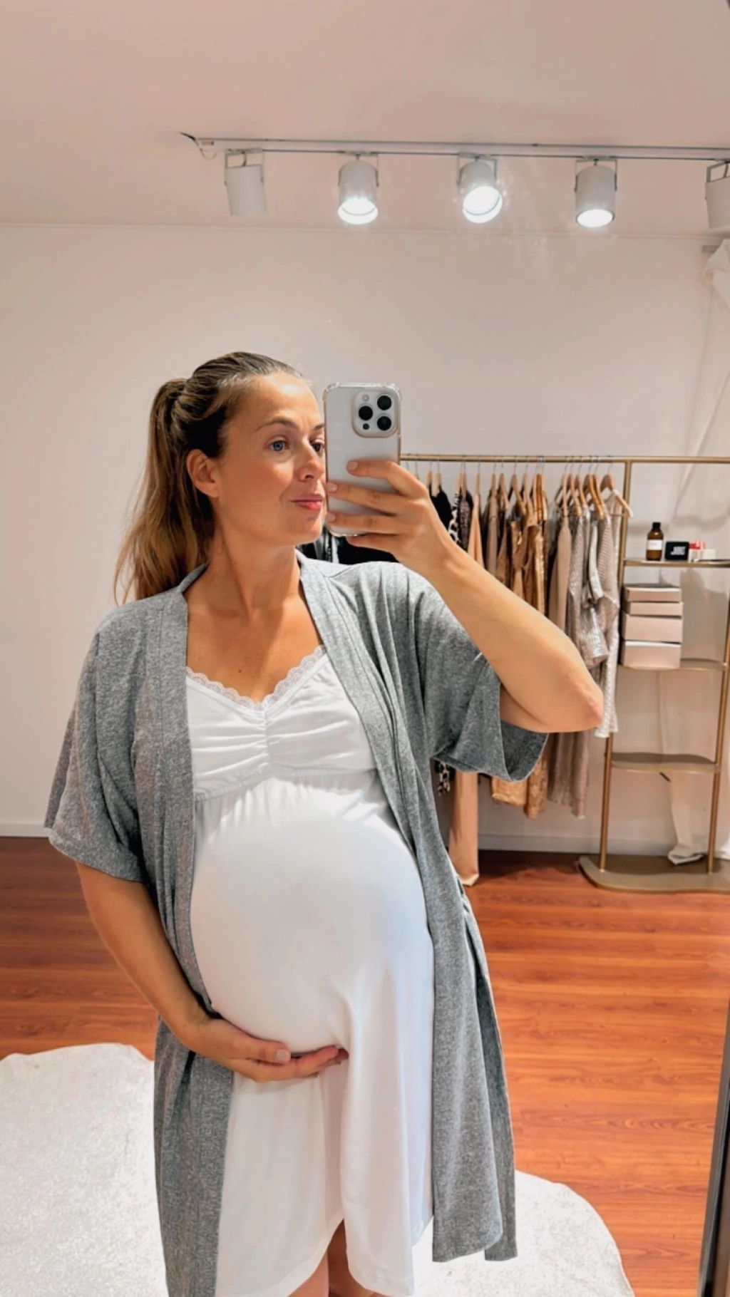 Camisón con spandex. Breteles regulables con terminaciones en puntilla y broche de amamantar.