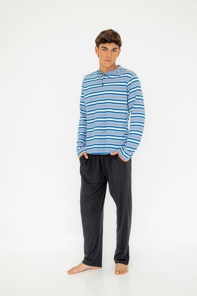 Remera manga larga con escote redondo y cartera con botones. Clásica, linda y abrigada para dormir y andar por la casa.