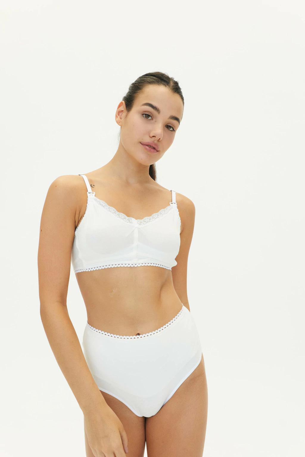 Corpiño de algodón con lycra con puntilla en escote, bretel y gancho desmontable apto para lactancia.